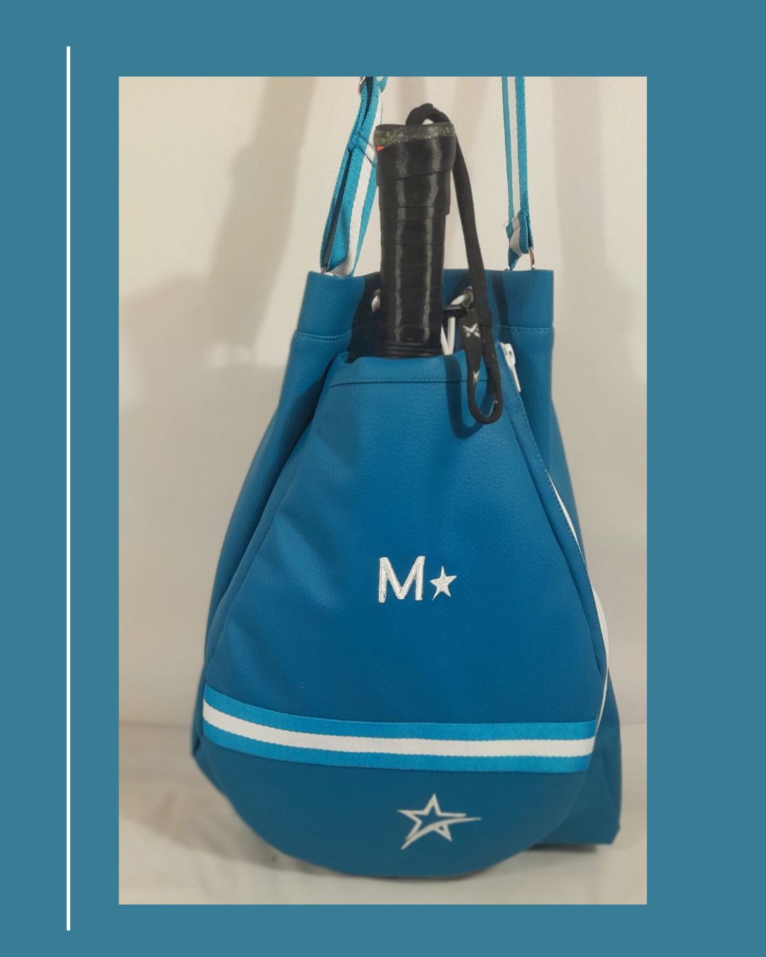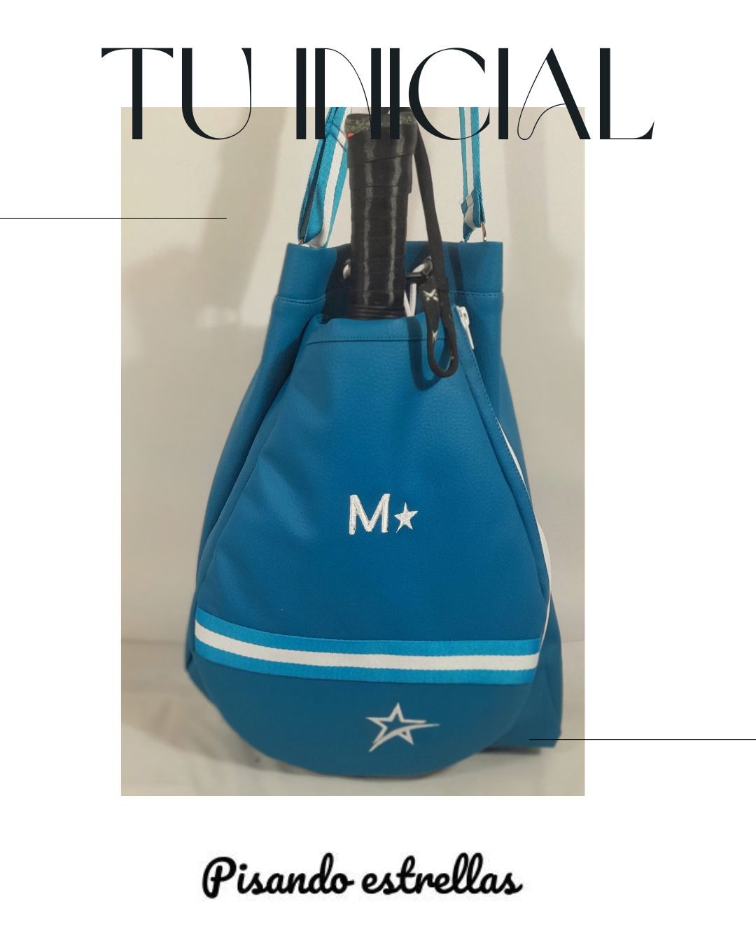Bolso de pádel tipo paletero en color cobalto, práctico y versátil. Puedes llevarlo como bandolera o de forma tradicional gracias a sus correas ajustables. Además, personalízalo con tu inicial para un toque único y exclusivo. Ideal para destacar y sentirte única.