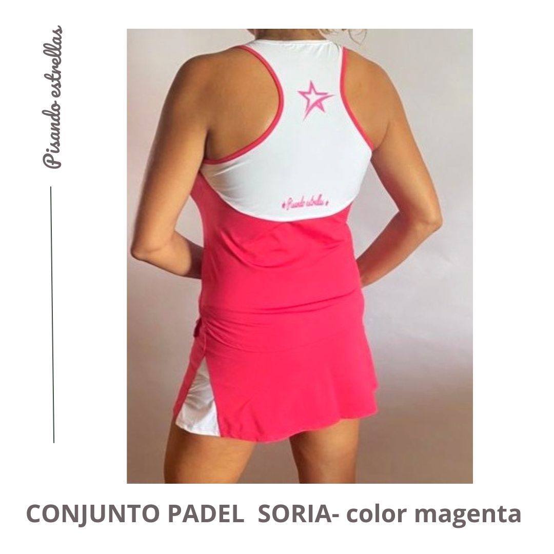 Descubre la elegancia en movimiento con nuestra colección Soria. Con un llamativo color fucsia y blanco, nuestras prendas de pádel te brindan estilo y rendimiento incomparables en la pista. Domina cada golpe con confianza y estilo con Soria.