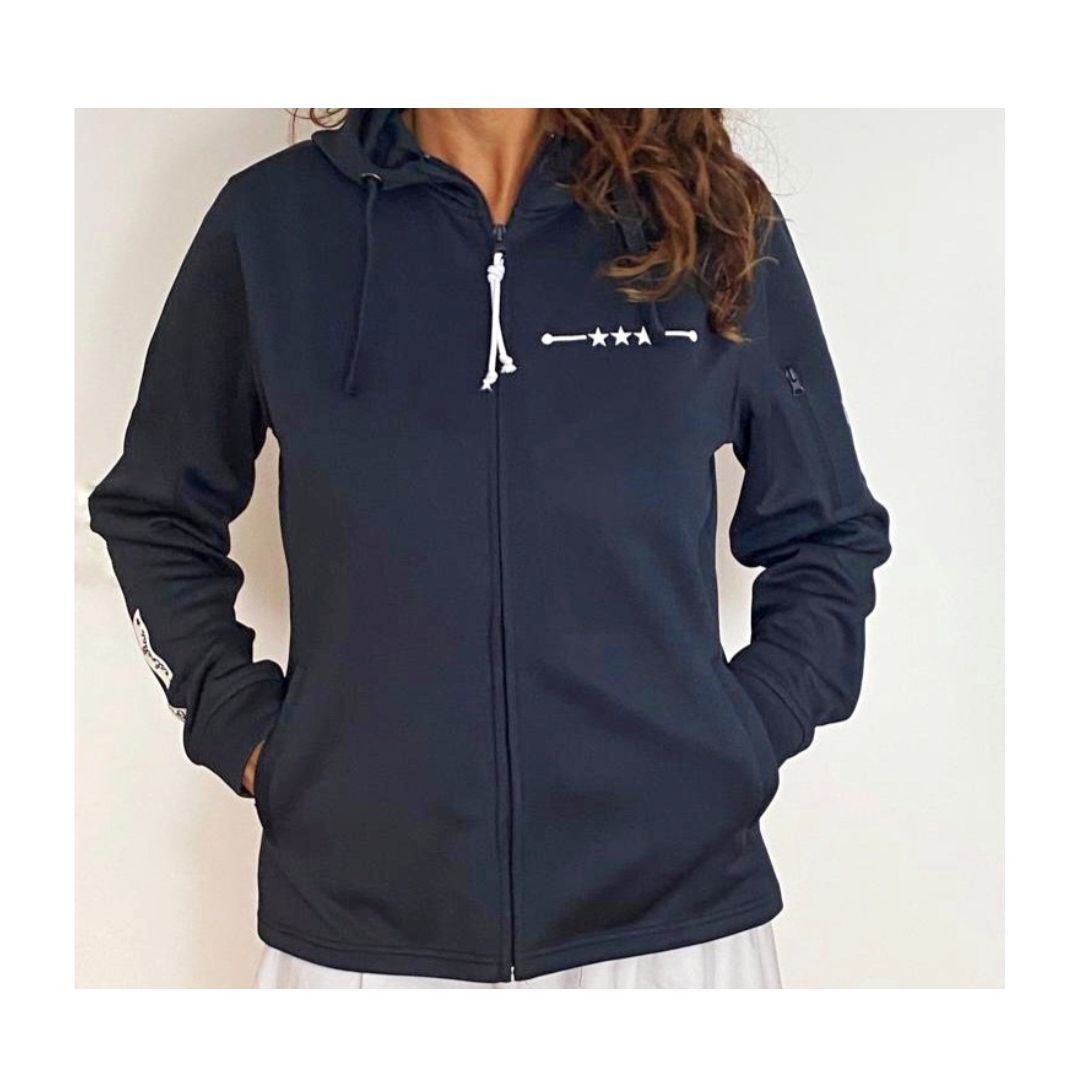Sudadera deportiva con capucha y cremallera ideal para acompañarte en todos tus eventos deportivos pádel, tennis. … etc, o en tu día a día le aportara a todos tus outfits ese toque chic.