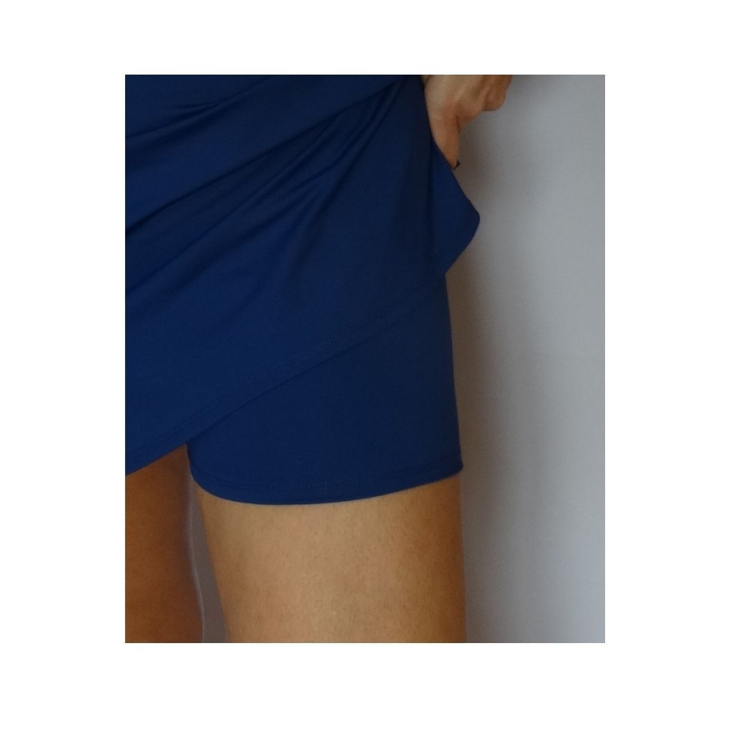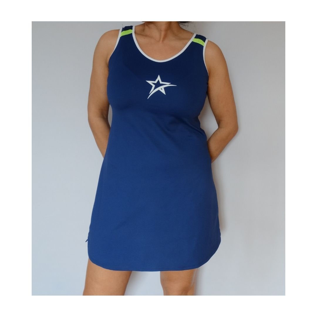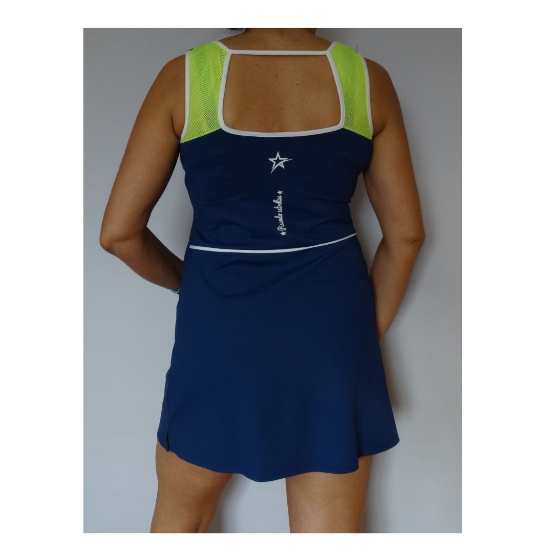 • El vestido de pádel de la colección Hazel en color índigo con contrastes en verde lima y blanco es una verdadera joya. Confeccionado con un tejido elástico de alta calidad, este vestido te brindará comodidad y estilo en la pista. Además, ¡no olvides que incluye un pantalón a juego en color  índigo para completar tu look deportivo! ¡Prepárate para brillar con este conjunto de pádel de Pisando Estrellas de la colección Hazel!